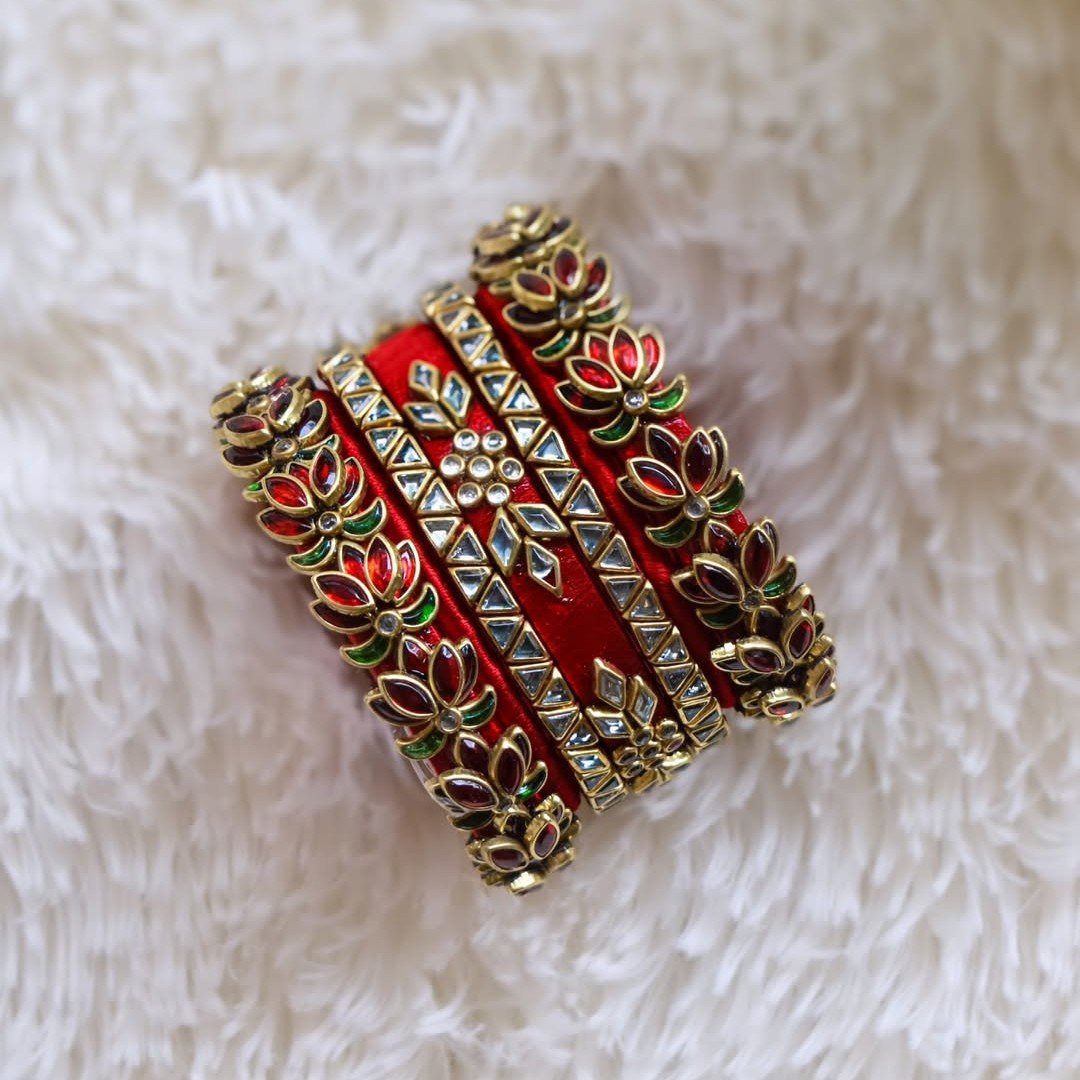 Divine Gajalakshmi Antique Gold-Plated Bangle Set
