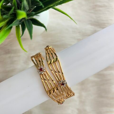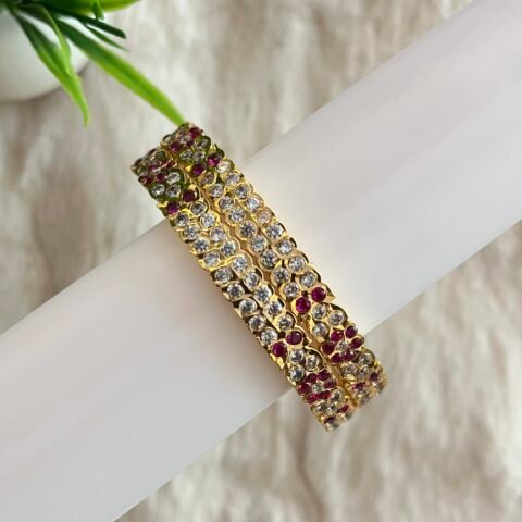 Elegant Impon Ruby-White Stone Bangles