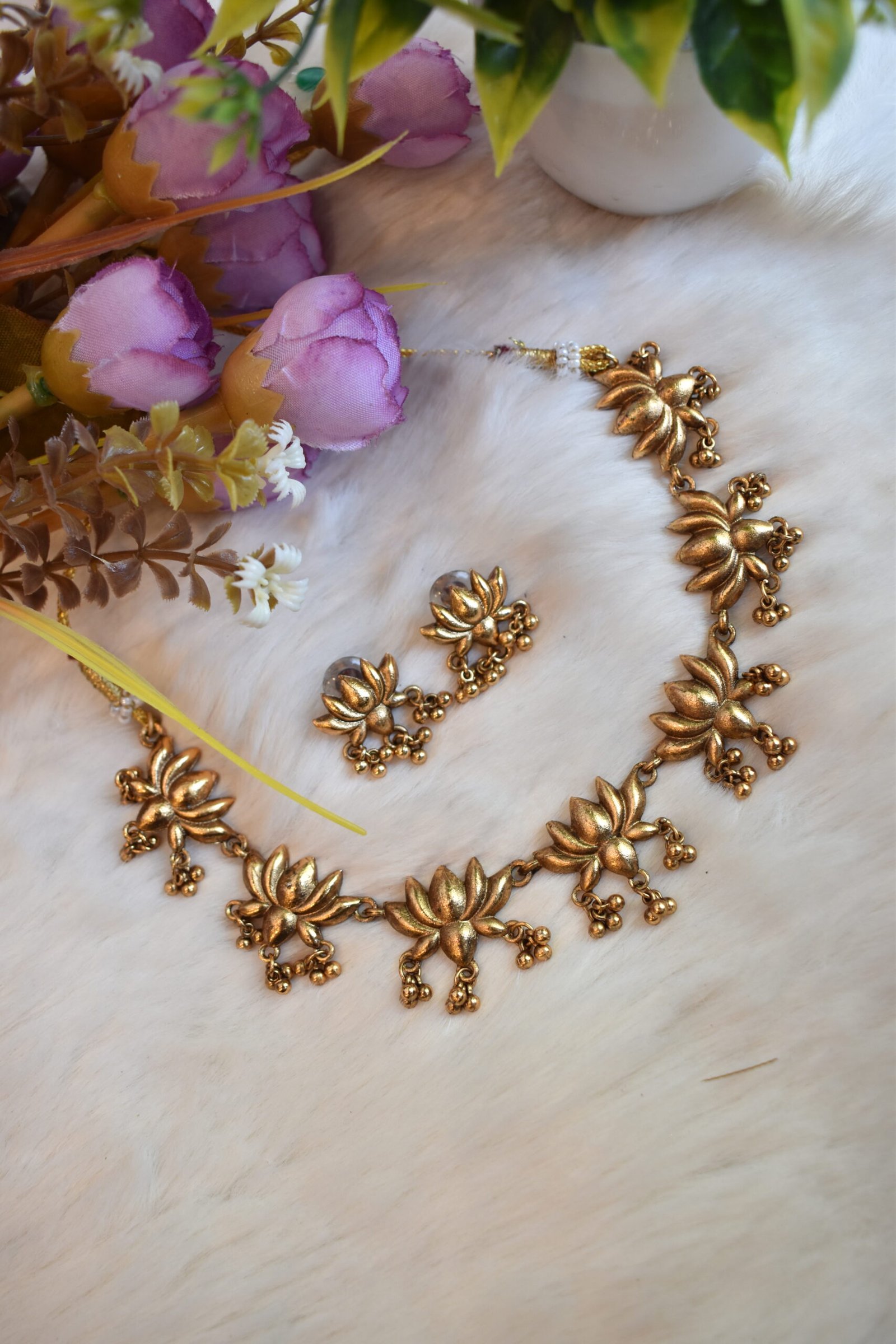 Antique Gold Lotus Bud Necklace Set[AN18]