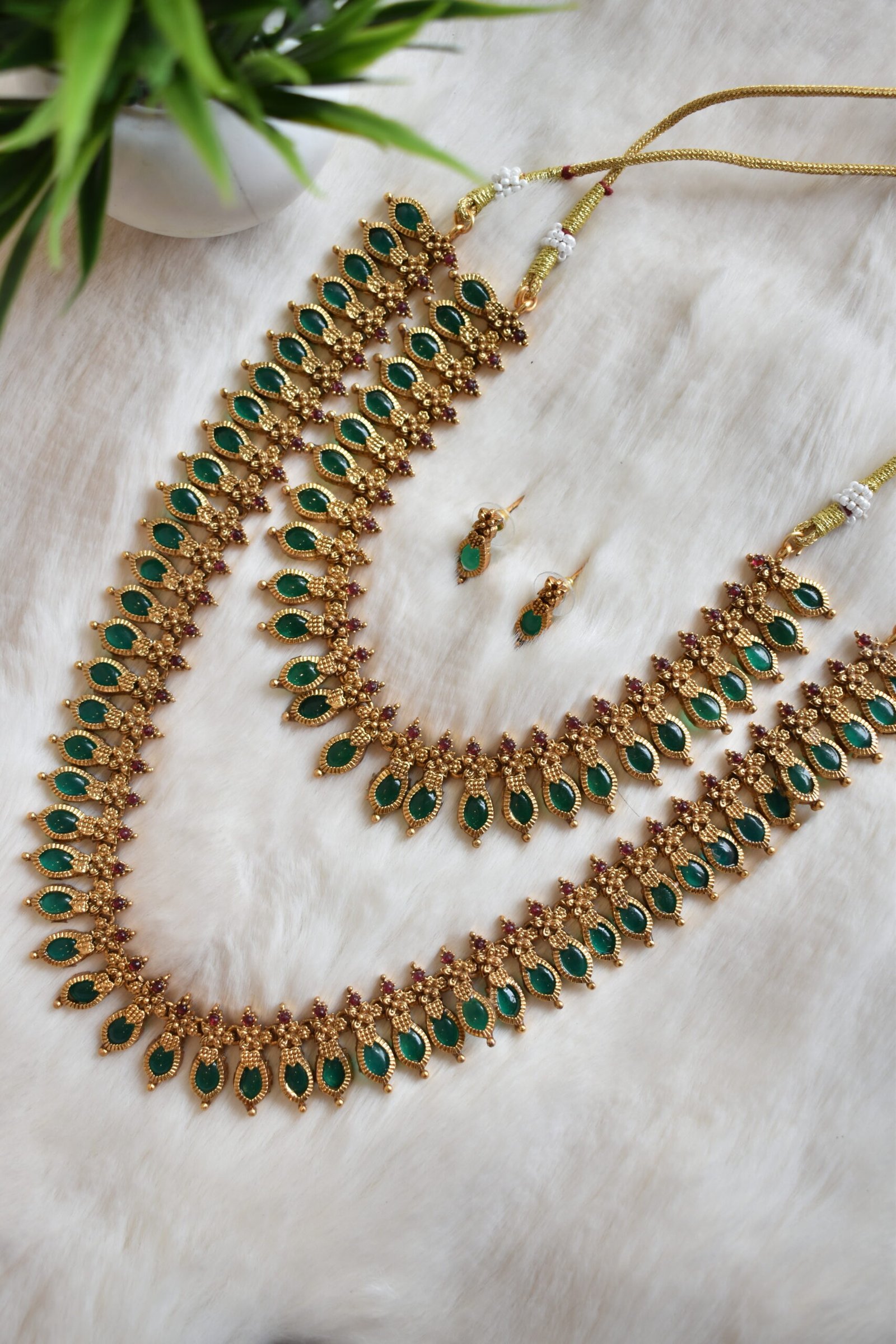 Antique Green Stone Necklace & Haram Combo Set[ABS01]