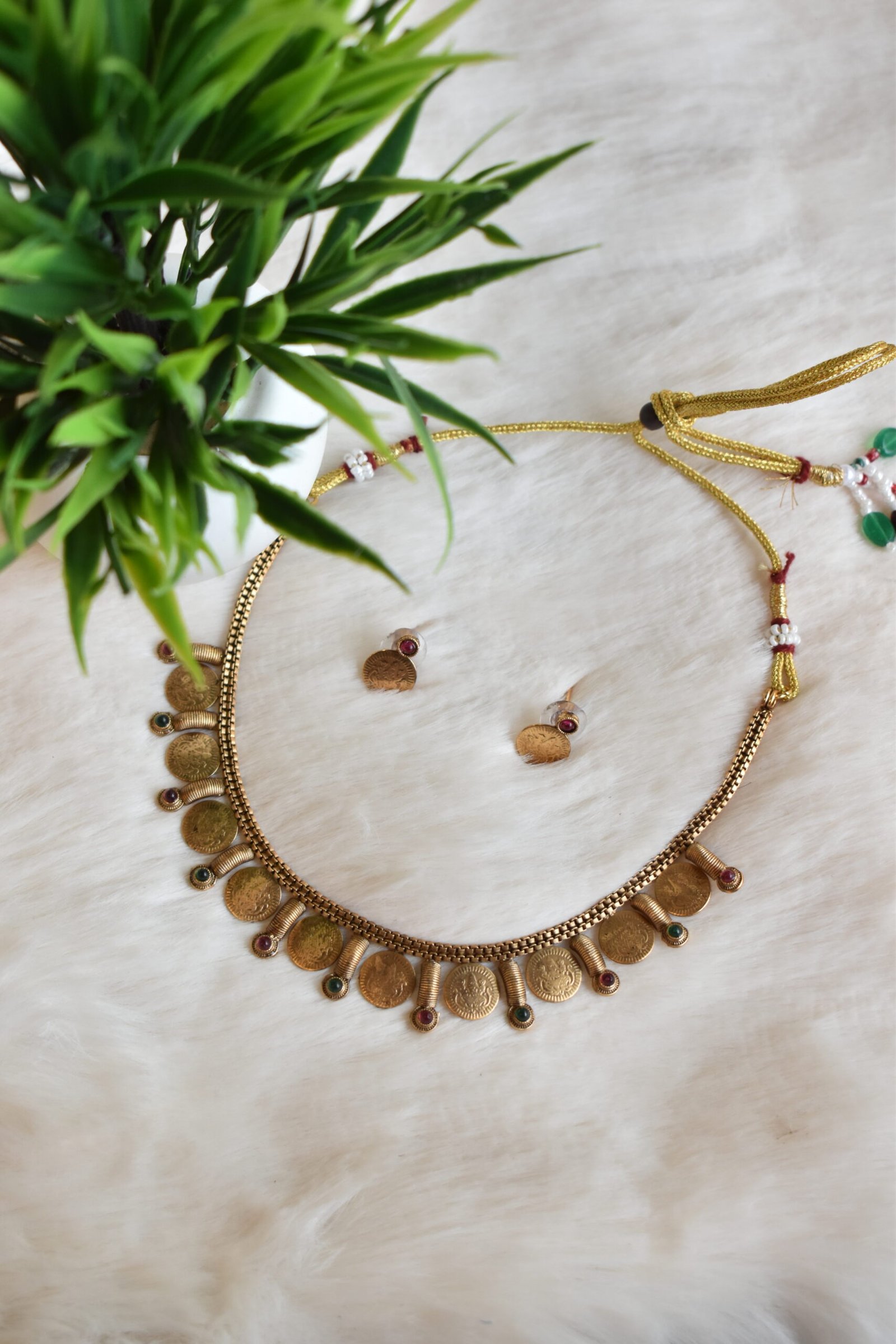 Versatile Ethnic Design: Crafted with a rich antique gold finish and paired with simple, matching coin-stud earrings, making it perfect for both festive wear and formal traditional events.