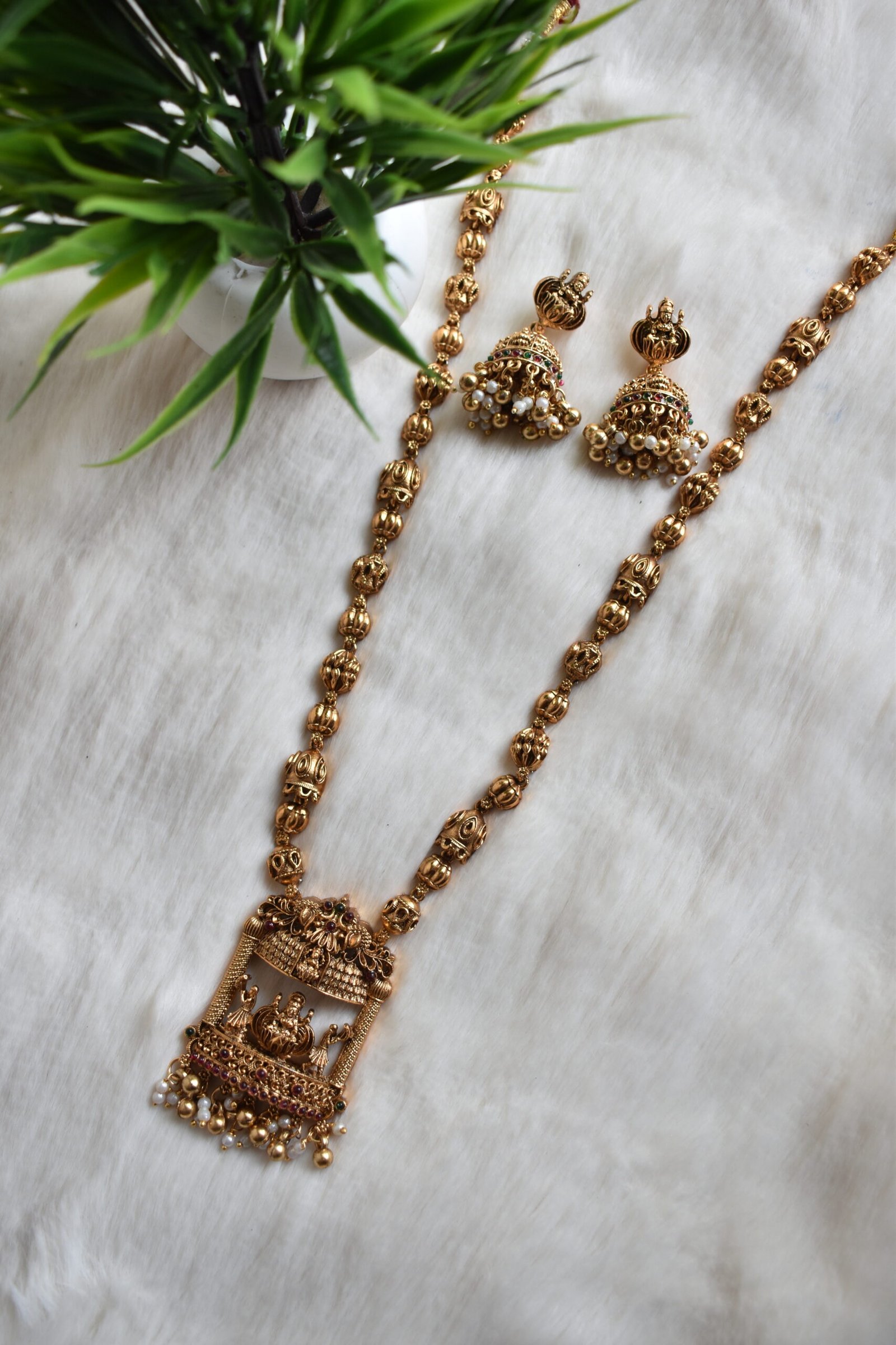 Antique Lakshmi Long Haram with Temple Jhumkas
