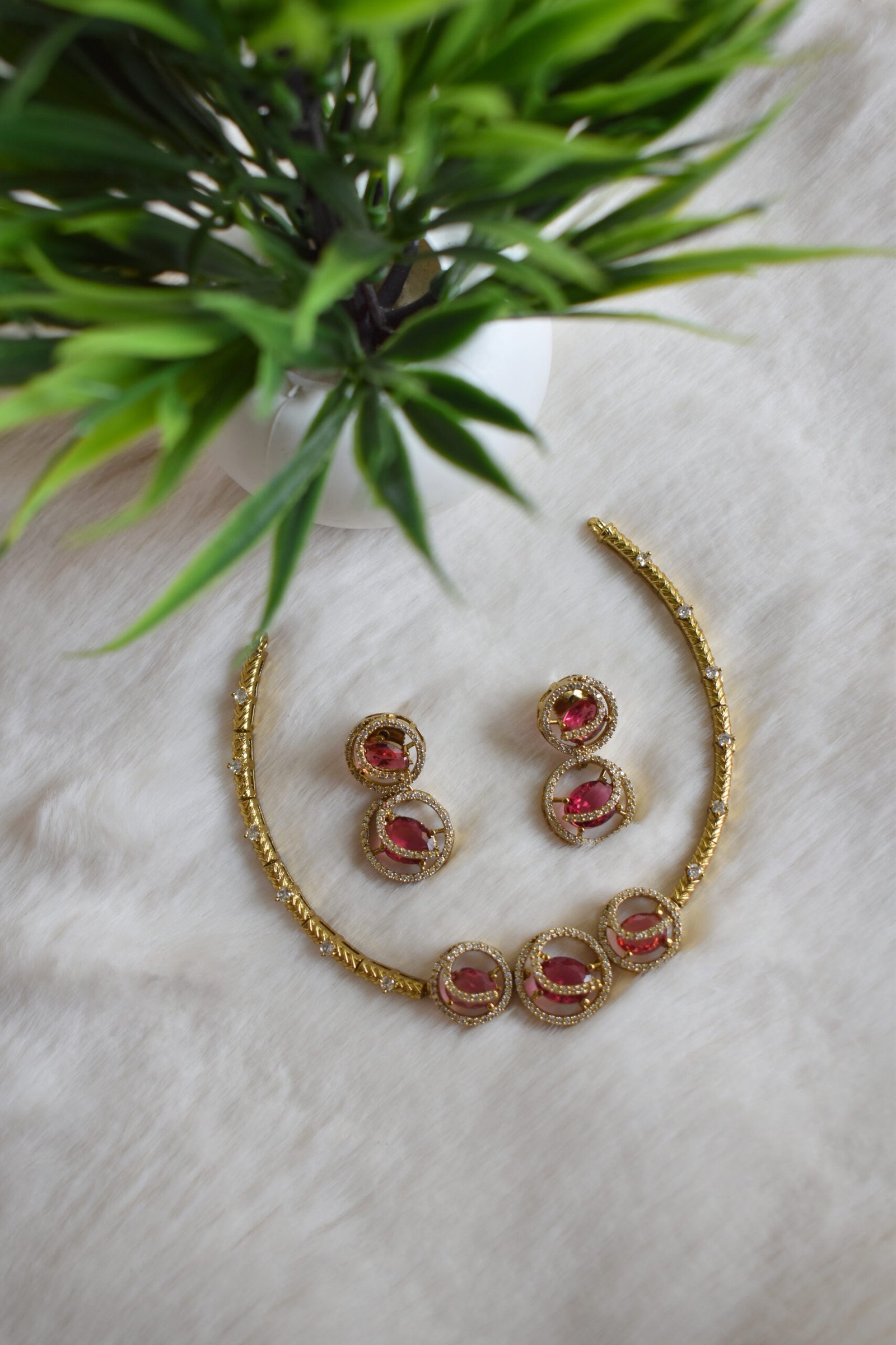 Gold Plated Ruby AD Circular Necklace