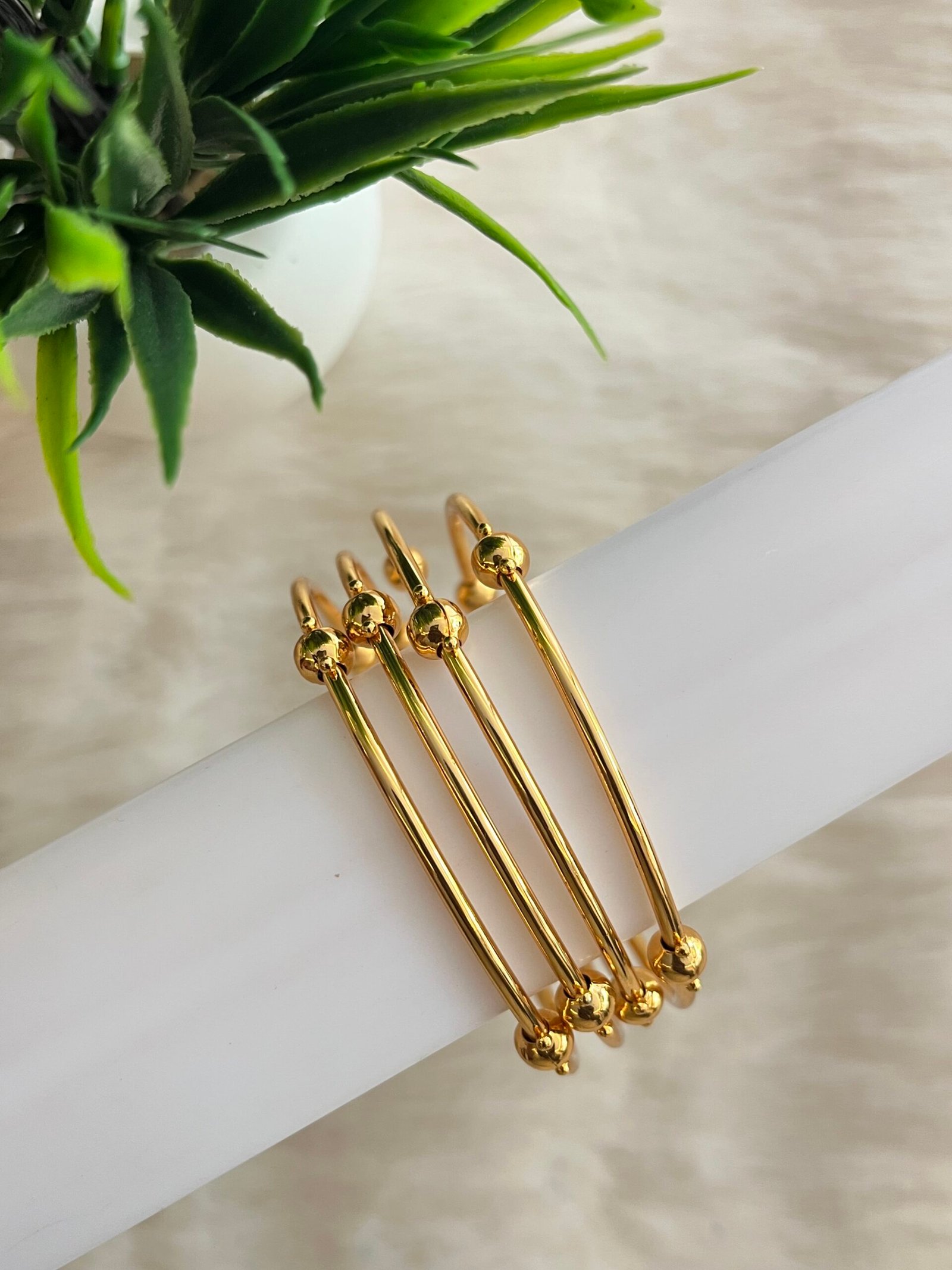 Sophisticated Bead Detail: Each bangle is accented with smooth, polished golden beads, adding a subtle yet stylish touch of texture.